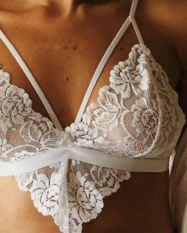 Conjunto de encaje con tiras en escote y babero en bajo busto, con Less regulable y breteles finos