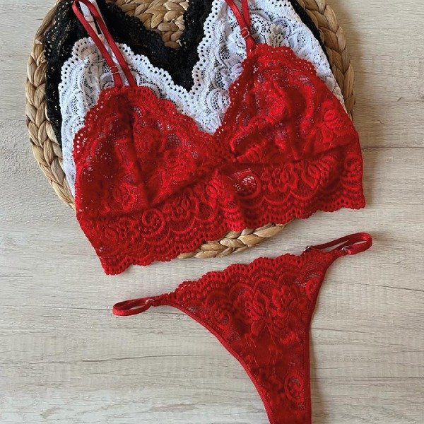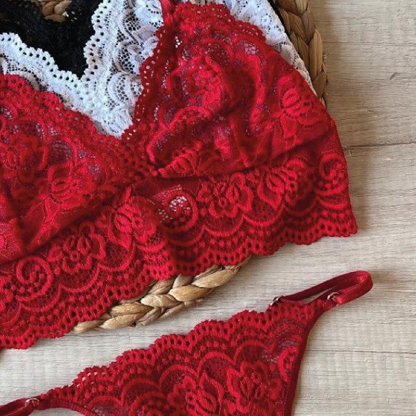 Conjunto de top y less regulable confeccionado en puntilla elastizada