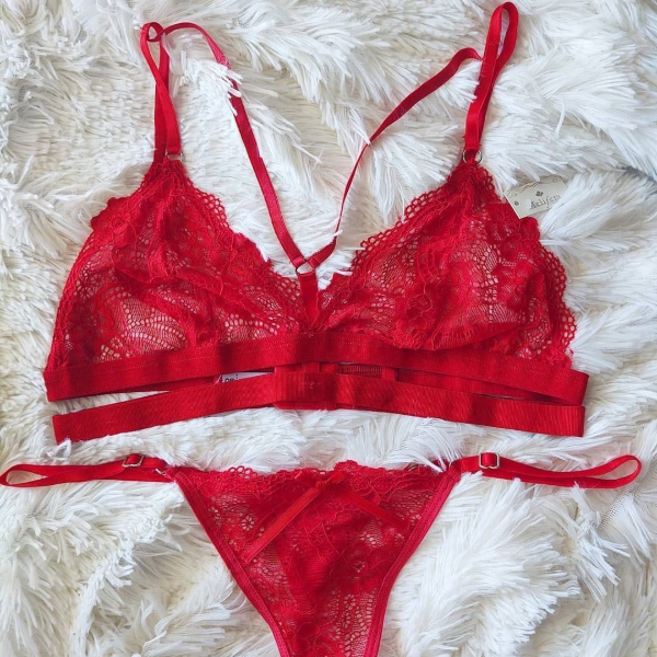 Es un conjunto de bralette y Less regulable confeccionado en puntilla elastizada.