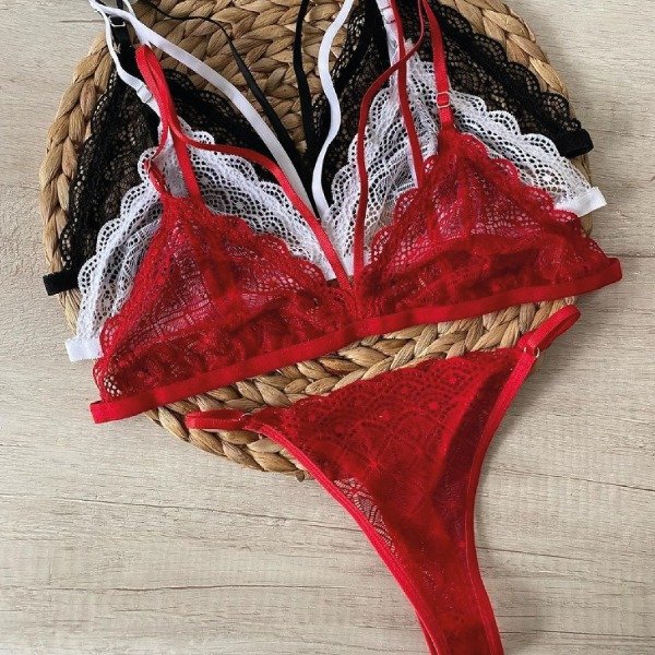 Conjunto confeccionado en puntilla elastizada. Bralette simple, sin colecta y colaless regulable.
