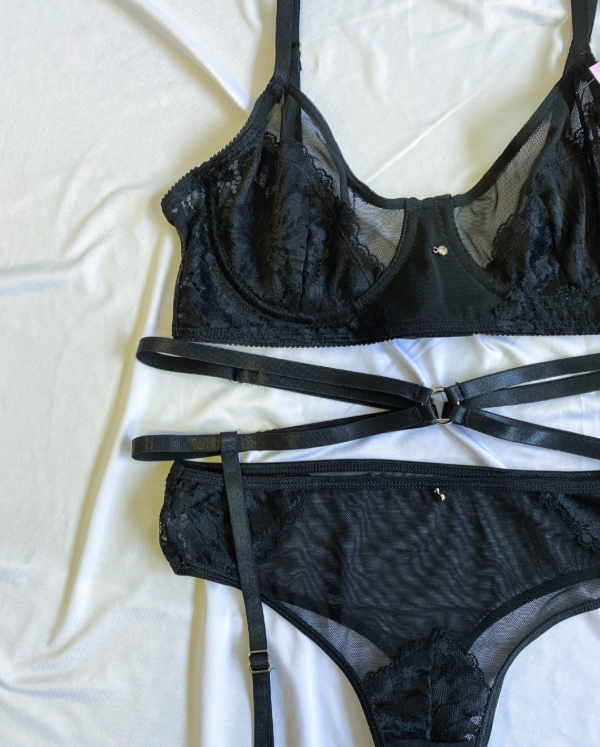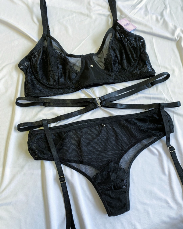 Conjunto de Microtul con detalles en puntilla elastizada, Less clásica tiro medio.