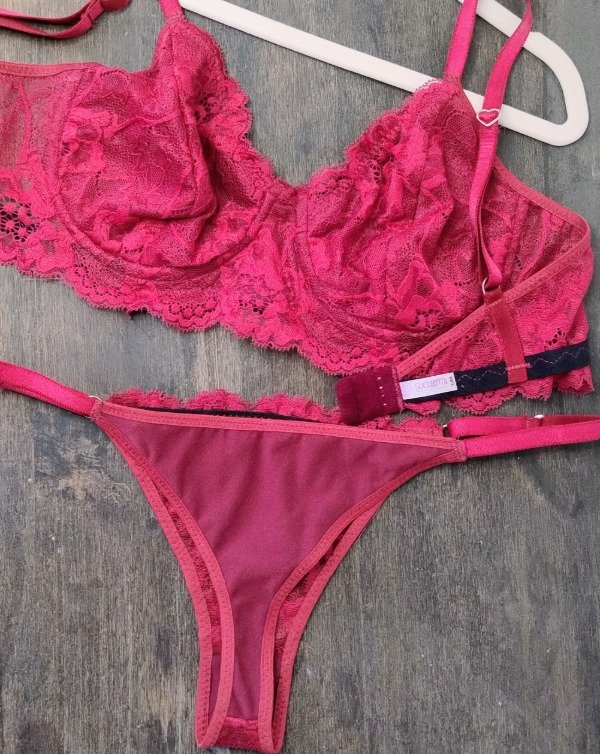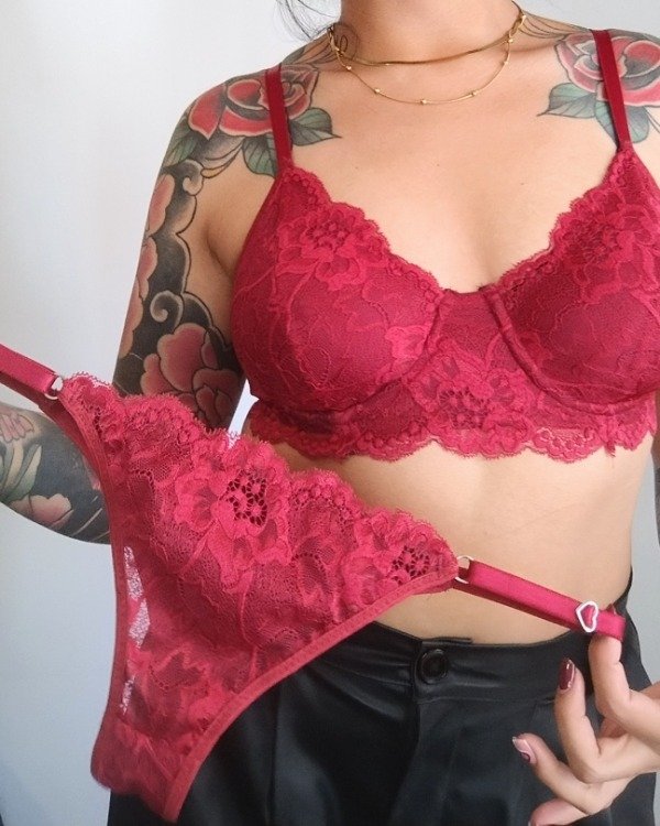 Es un conjunto de puntilla elastizada, corpiño con arco y taza forrada con tela soft al tono. Está prenda tiene gancho en la espalda que permite el acceso a la prenda y regularlo para que se adapte de forma cómoda a tu cuerpo.