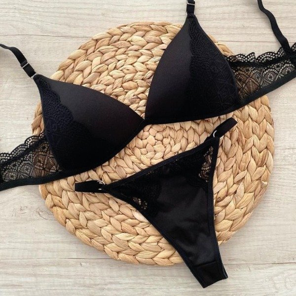Conjunto triangulito soft de microfibra con detalles en encaje y less regulable.