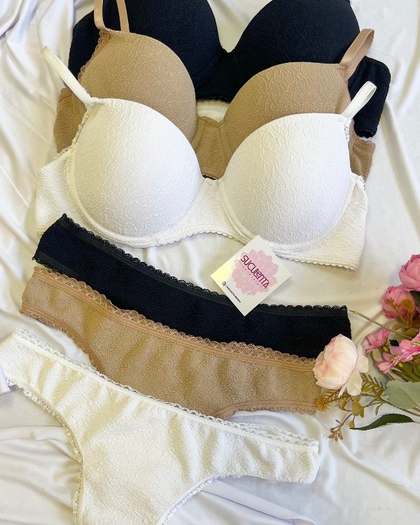 Conjunto taza soft, sin push up. Esta confeccionado en microfibra labrada, que aporta una textura y elegancia al conjunto, para salir de lo común a pensar de ser un basico infaltable en tu cajón de ropa interior.
