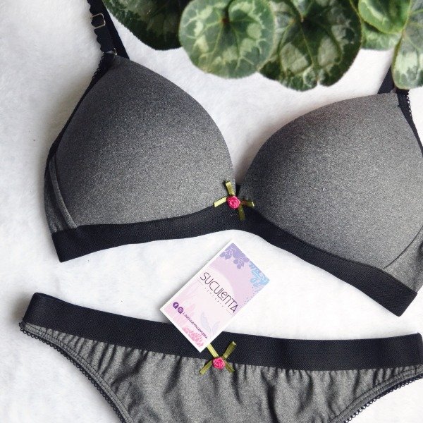 El conjunto Mía, esta compuesto por corpiño tipo triangulito soft, forrado en jersey soft. Una tela muy suave al tacto. Su colaless es tiro alto.